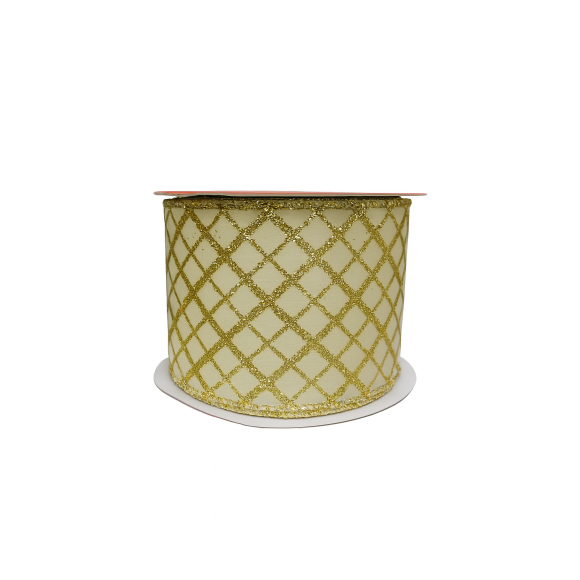 FITA NATALINA XADREZ LATERAL DOURADA
