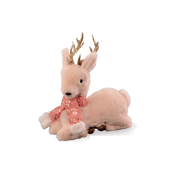 RENA DECORATIVA ROSA FELPUDA DEITADA
